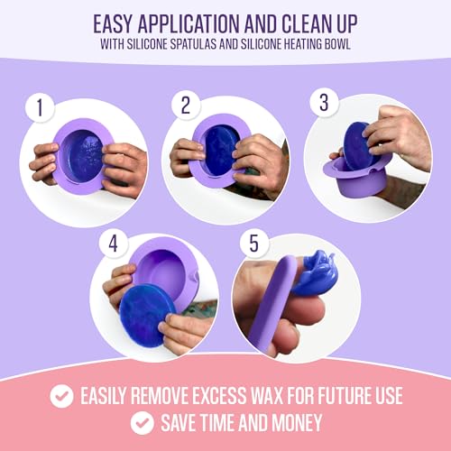 SUPER EASY CLEANING – Gone are the days of scraping sticky wax out of a metal tin, only for half of the wax to solidify. With this great set, simply allow the wax to harden in the silicone wax pot and bend the silicone to pop out the now hard wax disk, ready to be used in your next waxing session.