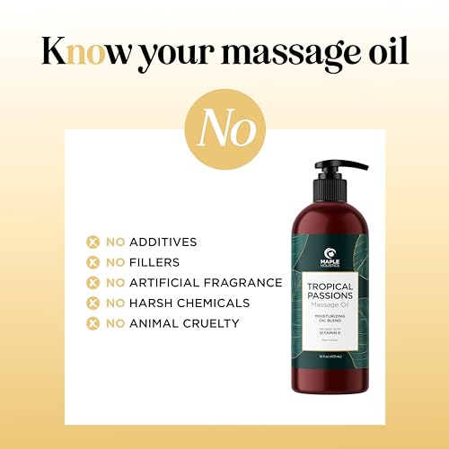 Tropical Massage Oil for Couples Relaxation – Full Body Massage Oil for Date Night with Smooth Gliding Coconut and Sweet Almond Oil with Mango Scent – Non GMO Gluten Free & Vegan (16 Fl Oz)