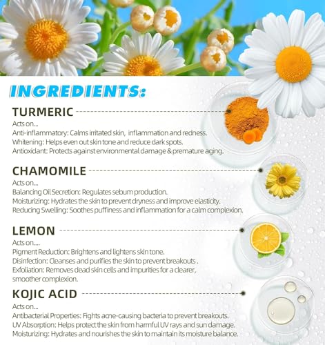 🍋【Natural Ingredients】This turmeric pad uses natural skin-friendly high-quality cotton sheets and contains turmeric, chamomile, lemon, etc. It is gentle and non-irritating and suitable for all skin types.