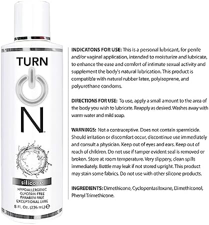 Turn On Silicone Based Sex Lube 8 Ounce Premium Personal Lubricant, Long Lasting for Condom Safe Vegan Ph-Balanced Hypoallergenic Glycerin & Paraben Free Intimacy, Water-Based Upgrade for Men & Women