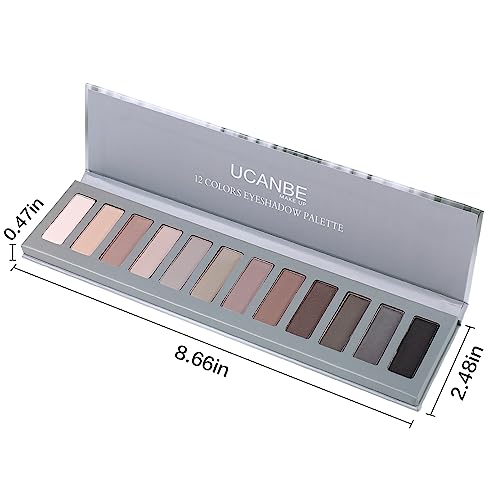 UCANBE 12 Color Eyeshadow Makeup Palette, Naked Nude Eye Shadow, Neutral Matte Shimmer Make Up Pallet with Double-ended Brush Set Kit, Highly Pigmented Long Lasting Waterproof