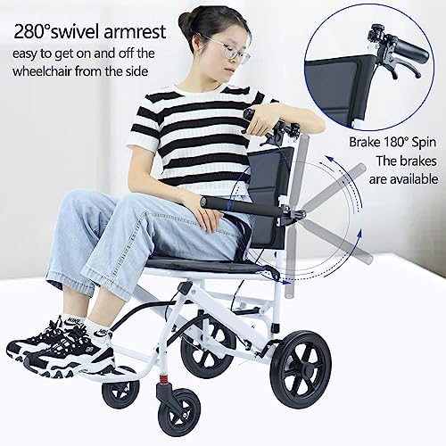 Ultralight Transport Wheelchair, 11 in Rear Wheel,Folding Portable Boarding Travelling Wheelchair with Hand Brake, Wheelchairs for Adults,Folding Wheelchairs,Trolleys for Elderly Aircraft Travel