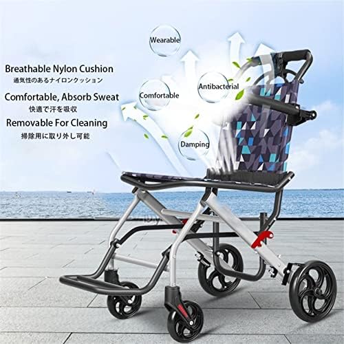 Ultralight Transport Wheelchair, Folding Portable Boarding Travelling Wheelchair with Hand Brake, Wheelchairs for Adults,Folding Wheelchairs (19.3X31.9X34.6 inches)
