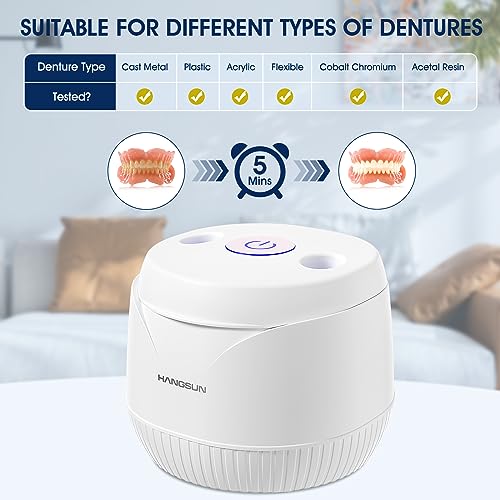 Suitable for Different Types of Dentures: Tested and proven to safely and effectively clean a range of denture types, including cast metal, plastic, acrylic, flexible, cobalt chromium, and acetal resin, making it a reliable cleaning option.