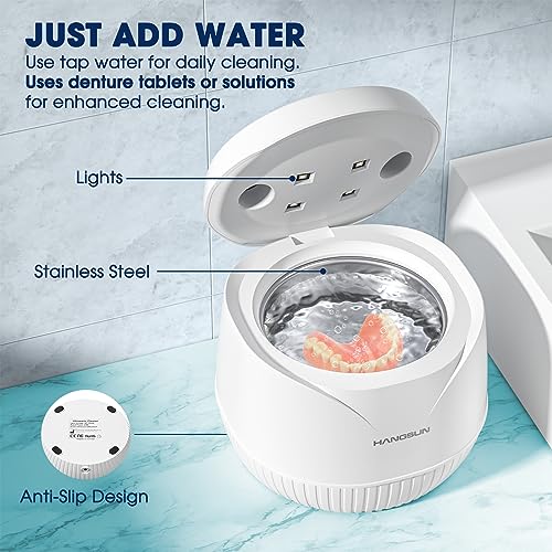 The Hangsun Ultrasonic Cleaner is specifically designed to clean a variety of dental appliances, including Dentures, Aligners, Retainers, Whitening Trays, Mouthguards and more.