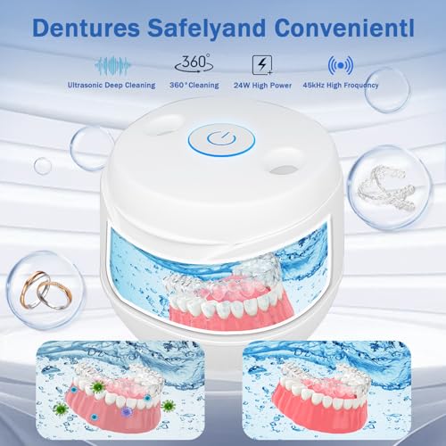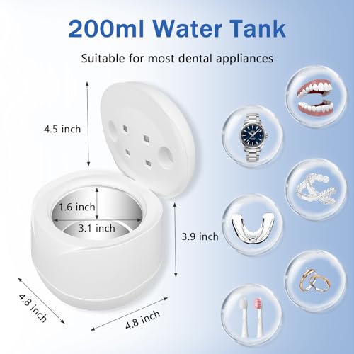 Ultrasonic Retainer Cleaner: Operating at a frequency of 45kHz, this device combines ultrasonic cleaning power with UV to provide a comprehensive solution for various items, including dentures, aligners, mouth guards, whitening trays, toothbrush heads, and even jewelry like diamonds.