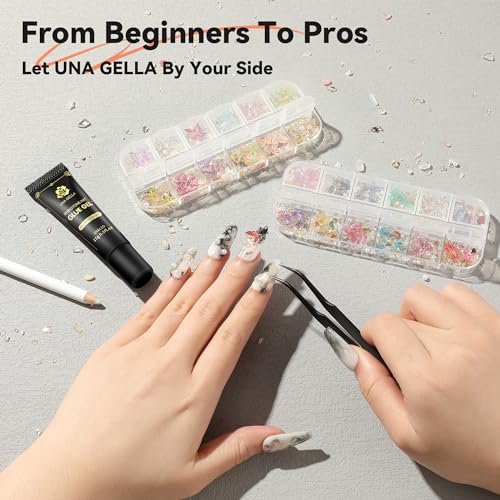✨ Dazzling Nail Art Essential : Transform your nail art into a dazzling masterpiece with the UNA GELLA Nail Art Rhinestone! This kit offers over 2000+ premium nail gems and glitter nail beads in various sizes, including stylish 3D flower decorations for truly eye-catching designs.