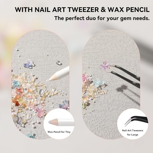 💅 Nail Art Mastery: Effortlessly craft mesmerizing nail designs with the array of nail art tools included in this set. Elevate your precision and unleash your creativity in the realm of nail art with the addition of the included tweezer, wax pencil and a variety of nail charms.