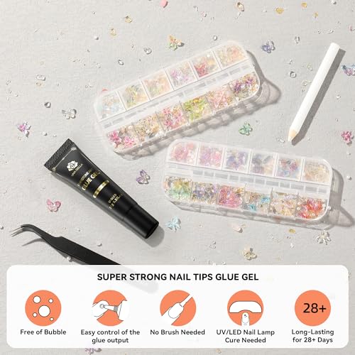 ✨ High-Performance Nail Rhinestone Glue Gel : This set includes a Nail Art Rhinestone Glue that is non-yellowing, formulated with a gentle touch, and completely waterproof. It can reliably bond nail gems for more than 28 days. Its tube-shaped design with a precision tip ensures accurate application, catering to both novice and professional users with ease.