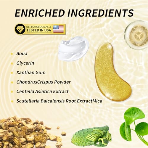 Golden eye masks provide all-in-one nourishment and treatment. The eye patches include mica , xanthan gum & centella asiatica.