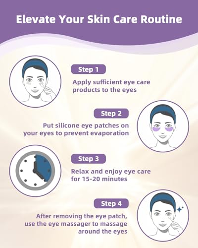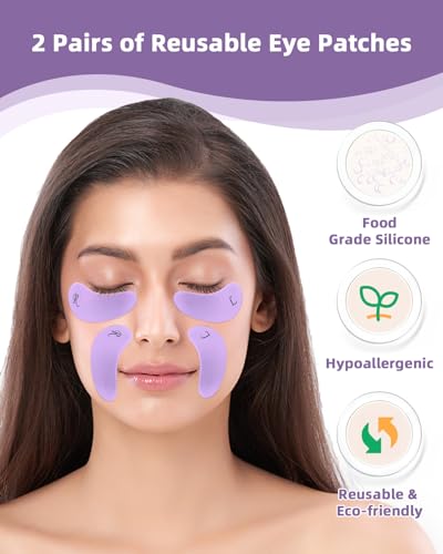 Under Eye Patches Silicone – 2 Pairs Reusable Eye Patches, Eye Wrinkle Patches, Reusable Under Eye Mask, Plump Fine Lines & Wrinkles, with Metal Eye Cream Applicator, Tin Case, Purple