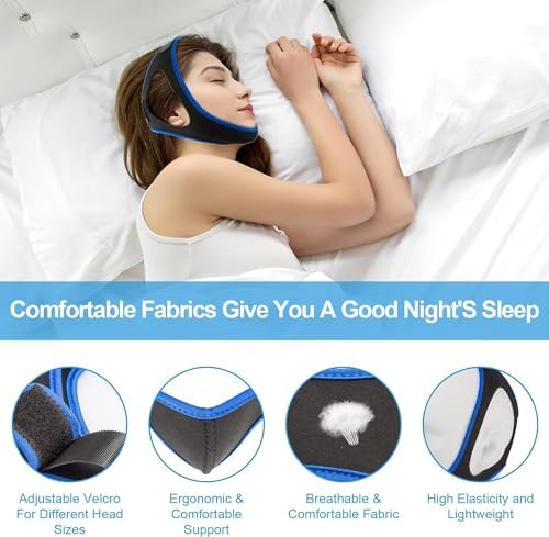 Upgraded Anti Snoring Chin Strap, Adjustable and Breathable Chin Strap for Users, Chin Strap for Snoring, Anti Snoring Devices to Have A Good Rest,Sleep Better for Men and Women