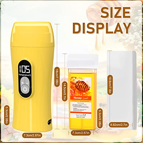 Upgraded Digital Roll on Wax, Honey Wax Roller Waxing Kit for Hair Removal, Portable Temperature-controlled, Thermostable Wax Warmer for Women and Men, Soft Depilatory Wax for Sensitive Skin (Yellow)