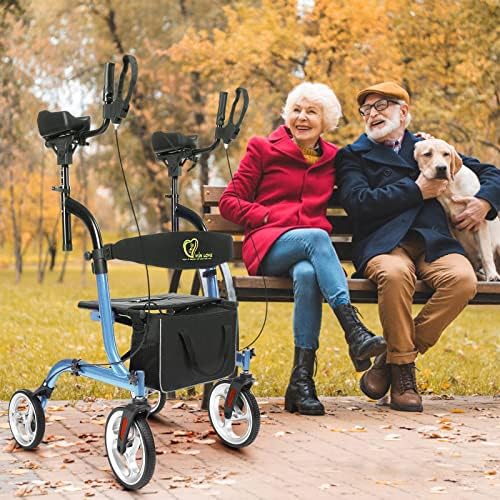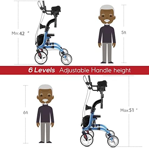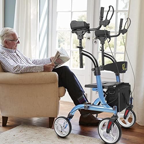 Upright Rollator Walker- Walkers for Seniors Tall Stand up Rolling Mobility aids with Armrest,Padded Seat, Backrest and Shopping Bag -WINLOVE -Blue