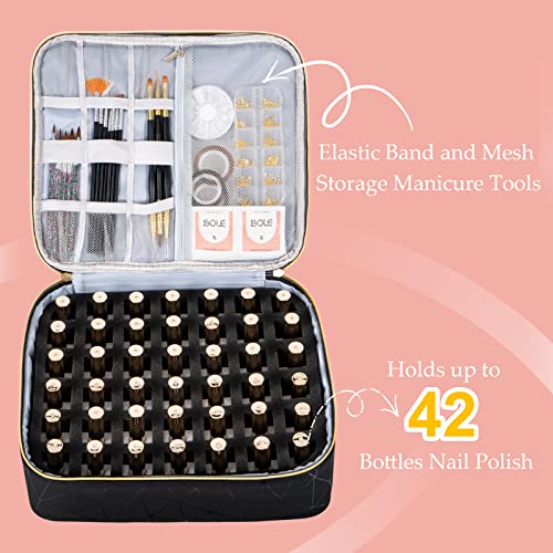 Uross Nail Polish Organizer Bag Holds 42 Bottles Nail Polish & Nail Lamp, Gel Nail Polish Organizers and Storage box for Nail Tech, Nail Kit Supplies Organizer Case – Black