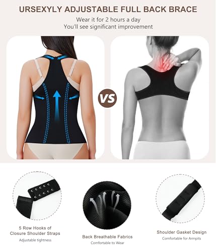 URSEXYLY Back Brace Posture Corrector for Women Adjustable Full Back Support Shoulder Straightener Upper and Lower Back Pain Relief(Black,L)