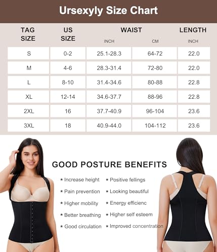 CHARMING POSTURE SUPPORT BACK BRACE: Ursexyly back brace features a moderate thickness, comfortable and breathable design, perfect for close-fitting wear.Our back braces effectively shapes your body, waist, and posture, creating a charming and confident posture. The back cross-belt design with strong elasticity support your back straight and fits the curve of your body, the back brace has the front 3-row hooks design ensures easy wear and adjust to fit the body perfectly.