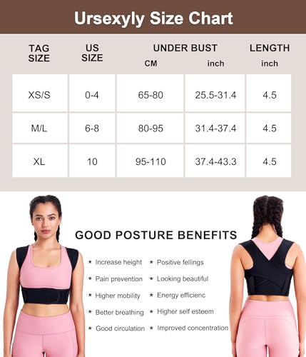 URSEXYLY Posture Corrector for Women Adjustable Upper Back Brace Posture Support Back Straightener Pain Relief(XS/S,Black)