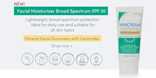 Introducing Vanicream Facial Moisturizer Broad Spectrum SPF 30 Mineral Sunscreen With Ceramides, a gentle yet effective skincare solution crafted for sensitive skin. This lightweight moisturizer offers broad-spectrum protection against both UVA and UVB rays, shielding your delicate skin from sunburn and premature aging without causing irritation. Enriched with ceramides, hyaluronic acid, and other emollients, it replenishes and maintains the skin’s natural moisture barrier, leaving it feeling soft, smooth, and hydrated throughout the day. Free of common irritants like fragrances, dyes, lanolin, parabens, and formaldehyde, this non-comedogenic formula won’t clog pores or cause breakouts. Available in a convenient pump tube for mess-free application, choose from the travel-friendly 2.5 oz size or the larger 15.3 oz size for extended use. Keep your skin protected and moisturized with Vanicream Facial Moisturizer Broad Spectrum SPF 30.