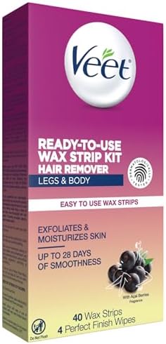 HAIR REMOVAL MADE EASY: Simplify your routine with the Veet ready-to-use waxing kit, complete with 40 wax strips and 4 perfect finishing wipes. Ditch the drive to the salon and achieve professional results at home for a fraction of the cost.