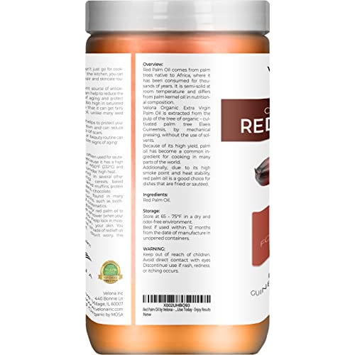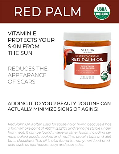 velona USDA Certified Organic Red Palm Oil 32 oz | Food and Cosmetic Grade | in jar | Extra Virgin, Cold Pressed | Skin, Face, Body, Hair Care | Use Today – Enjoy Results