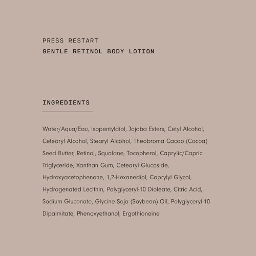 Skin Tightening Ingredients – The Press Restart skin tightening cream contains encapsulated retinol that gently renews skin, while the moisture-locking ingredients, like cocoa butter and squalane, relieve dryness and make this a firming body lotion.