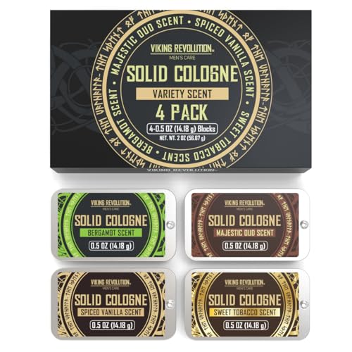 Viking Revolution 4 Pack Mens Colognes – 0.5 Oz Solid Perfume with Spiced Vanilla, Sweet Tobacco, Majestic Oud, Bergamot – Travel Wax Balm Cologne