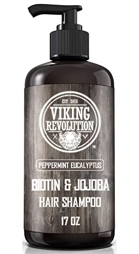 Viking Revolution Biotin Mens Shampoo and Conditioner Set – Eucalyptus Shampoo and Conditioner Set with Jojoba Oil and Mint Oil – Peppermint Oil Hair Conditioner for Men (17 Oz)