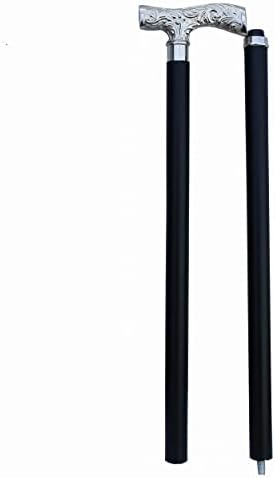 MATERIAL Used : Solid Brass Handle & Wooden Stick in Black FINISH: Silver Chrome finish Handle With Black Mate Wooden Shaft Design with Brass Handle and The rubber tip helps prevent slipping and provides traction in all weather conditions. Great for all surfaces. IDEAL GIFT ITEM: A prefect gift choice for old people in family, friends and loved ones! This fancy walking has a shaft which is brown in color and made of hardwood which can be parted into three separate sections to provide portability. SIZE & SPECIFICATION Stick Size : 38″ standard, Stick or tip width 1″, If you want to adjust the height length according to you than you can cut it from the bottom and easily replace rubber brass bottom tip