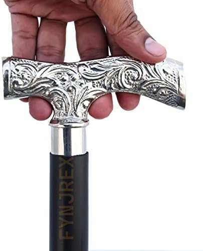 FYNJREX Vintage Antique Walking Cane Wooden Stick Silver Brass Handle Knob Gift