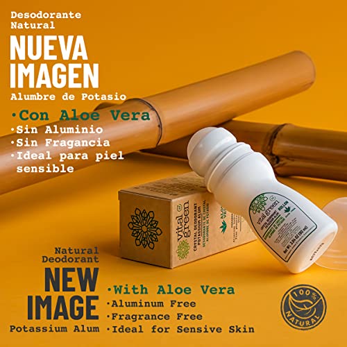 Vital Green Roll On Deodorant of Potassium Alum with Aloe Vera – For sensitive and irritable skin – Eliminates bad odor and does not stain – 3.04 Fl Oz / 90 ml (3 Units)
