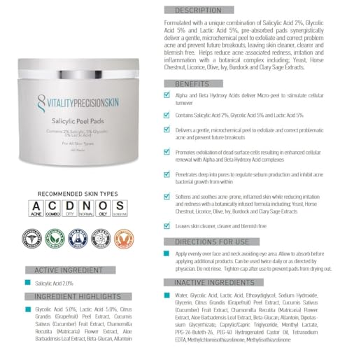 Vitality Precision Skin Salicylic Peel Pads- 3 Month Supply