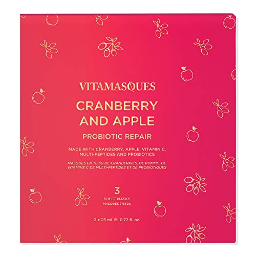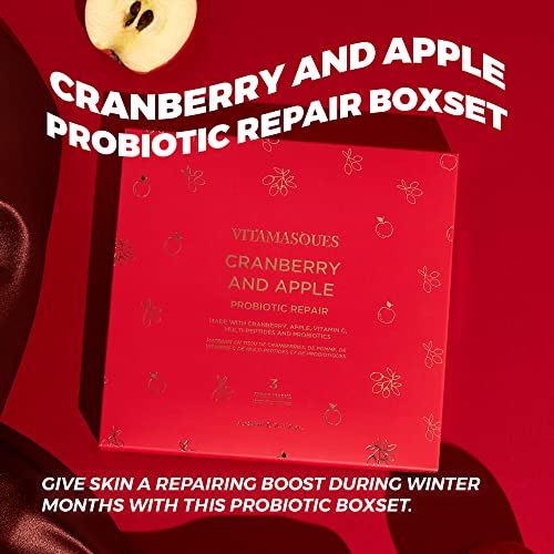 Vitamasques Cranberry and Apple Probiotic Repair Boxset – 3 Vegan Face Masks with Adaptogenic Ingredients to Improve Skin Health