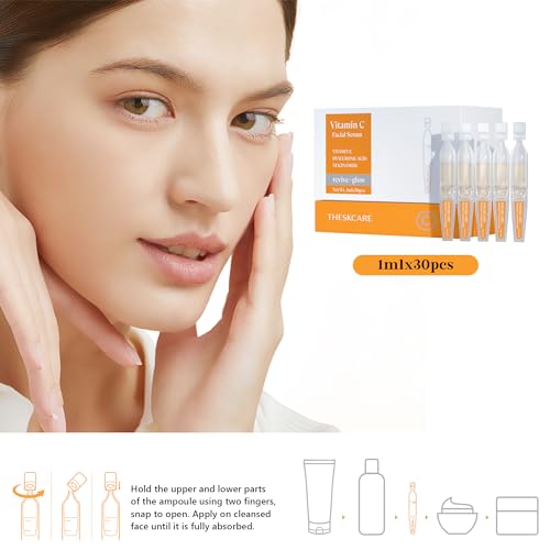 Vitamin C Face Serum with Hyaluronic Acid,Glutathione,Vitamin E & Niacinamide, Anti Aging Facial Serum for Wrinkles & Dark Spots,Hydrating & Glowing,30 Ampoules