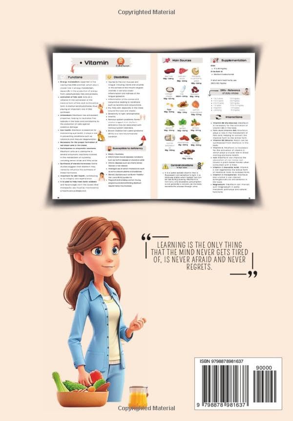 Throughout these pages, you will discover the primary functions of each vitamin and mineral, the deficiencies that can arise when they are lacking, and the possible interactions they may have with other nutrients. We will explore the DRIs (Dietary Reference Intakes), understand which groups of people are more prone to deficiencies, and identify the main food sources.