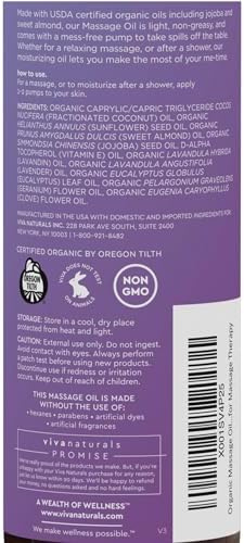 Viva Naturals Organic Massage Oil (8 fl. oz.) – Lavender Scented Relaxing Body Massage Oil for Massage Therapy – Perfect for Home Use & Professional Massages – Non-Greasy and Non-Sticky Formula