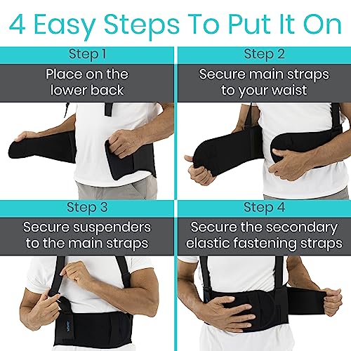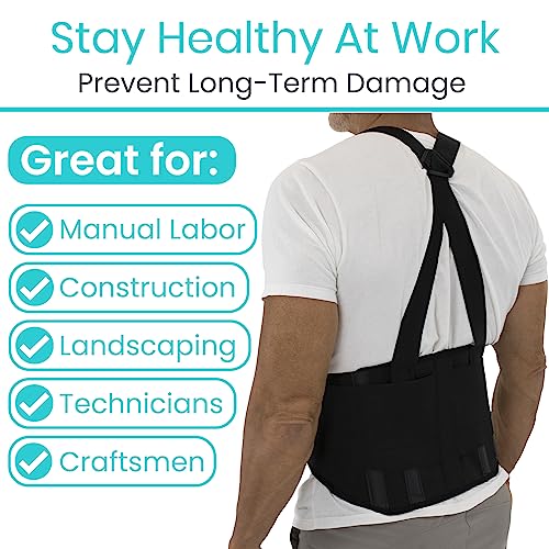 Vive Back Brace for Heavy Lifting – Lower Back Brace Support Belt for Men & Women w/Suspenders – Lumbar & Sciatica Pain Relief – Adjustable Compression for Herniated Disc, Lift Harness for Protection