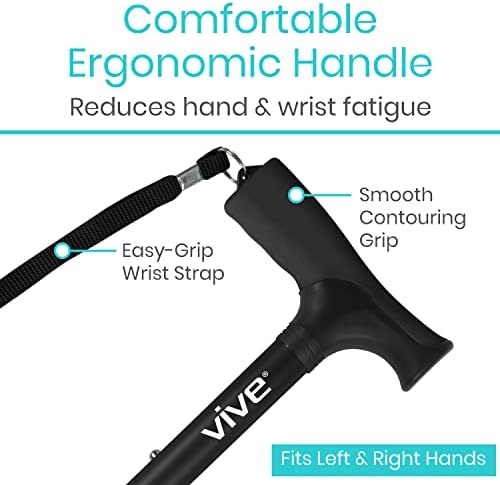 Be the first to review “Vive Foldable Walking Cane for Men, Women – Collapsible, Lightweight, Adjustable, Portable Hand Walking Stick – Balancing Mobility Aid – Sleek, Comfortable T Handles (Black)”
