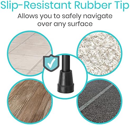 ADDED STABILITY AND TRACTION ON ANY SURFACE: Safely navigate over any surface with the slip-resistant rubber cane tip that is also non-marking. The offset cane is also compatible with most replacement cane tips.