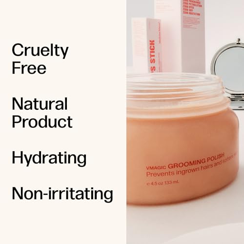 VMAGIC by Medicine Mama Grooming Polish – All-Natural Exfoliating Sugar Scrub – Preps Skin & Body for Grooming, Helps Prevent Ingrown Hairs – Brazilian Wax & Bikini Shave Aftercare – 4.5 oz