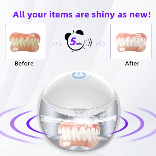 Ultrasonic and UV-C Deep Clean: Ultrasonic Cleaner for Dentures and LED automatically work for 5 minutes, cleaning 99.99% is more effective and thorough, gently remove dirt and grime in short amount of time, keep your dentures as good as new every day. ( EPA Est No: 95585-TX-1/95585-CHN-1 )