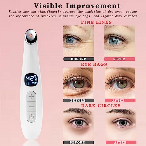 Vowleike Eye Lift Wand, 3 in 1 Vibrating Red Light 98°F to 113°F LCD Display Eye Massager for Dry Eyes, Dark Circles and Puffiness, Electrical Face, Neck Sculpting Pen for Fine Lines and Wrinkles
