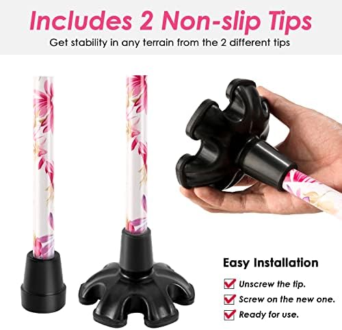 REPLACEABLE FOOT COVERS | An extra-wide base helps keep the cane standing on its own.Another common foot pad is easy to carry. The anti-skid design provides a good strong grip, endowing the platforms with excellent antiskid property and wearability.