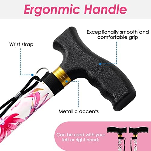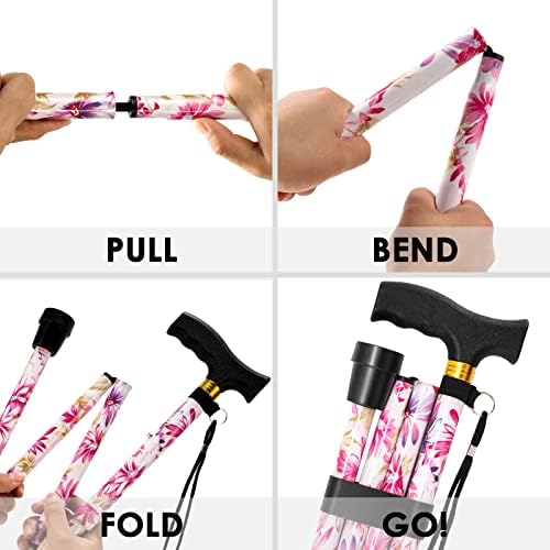 Walking Cane PANZHENG Cane for Man/Woman | Mobility & Daily Living Aids | 5-Level Height Adjustable Walking Stick | Comfortable Plastic T-Handle Portable Walking Stick Folding Cane