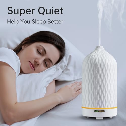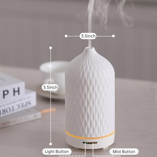 Wanlola Essential Oil Diffuser,Aromatherapy Diffuser with Diamond Pattern,120ML Ceramic Diffuser with Auto Off Function & Warm Light for Home,Decor,White