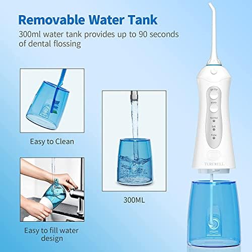 ★【300ML Detachable Water Tank & IPx7 Waterproof】300ml water capacity perfect for enough and uninterrupted oral dental flossing. Detachable design allows you to thoroughly clean the limescale inside the tank. Plus the IPX7 waterproof and can be used in the shower.
