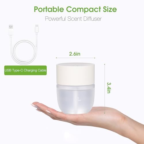❤️ Portable Powerhouse: Unleash tranquility anywhere with our compact design aromatherapy diffuser(2.6″x2.6″x3.4″), USB Type-C rechargeable, cordless operation, and an impressive battery life of up to 1200 hours.