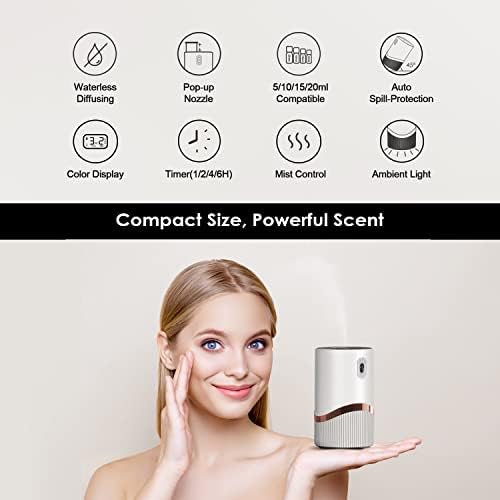 Waterless Diffusers for Essential Oils,Aromatherapy Diffuser with Battery Operated,No Water & Portable & Smart & Cordless Design,with Nebulizer for Cold Mist 1/2/4/6H