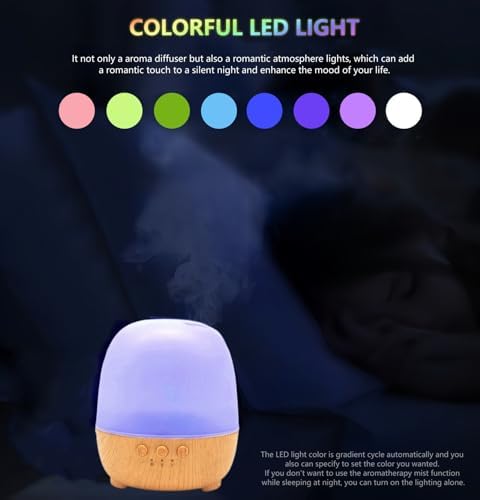ใ€Colorful Lightsใ€‘The Small aroma diffuser for pure essential oil is designed multiple color light, which not only is an aromatherapy machine, but also a small night light. The LED light color is gradient cycle automatically and you also can specify to set the color you wanted. If you don’t want to use the aromatherapy atomization function while sleeping at night, you can turn on the lighting alone.