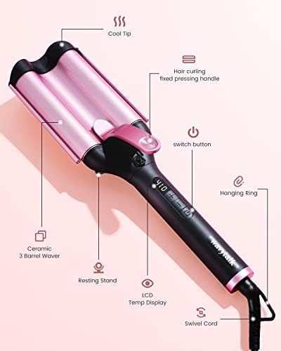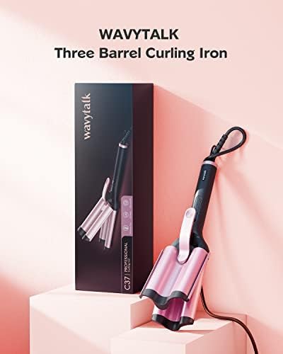 Wavytalk Professional Hair Crimper Curling Iron Wand Hair Waver 3 Barrel Beach Waves Rose Gold